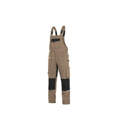 Pánské montérkové kalhoty s náprsenkou, strečová tkanina umožňující volný pohyb, náprsní kapsa s klopou, pas s poutky na opasek, přední kapsy s kapsou na zip, multifunkční kapsy na obou stranách, kolena zesílena 600D polyesterem s možností vložení kolenních výztuh, dvě zadní kapsy - jedna s klopou, zadní spodní lem nohavice vyztužen 600D polyesterem, šle s gumou vzadu, reflexní doplňky. Doporučené použití: strojírenství, stavebnictví, lehký průmysl, automobilový průmysl, logistika, skladová manipulace, spedice, autoservisy, údržba, montáže, zemědělství, zahrada, hobby.